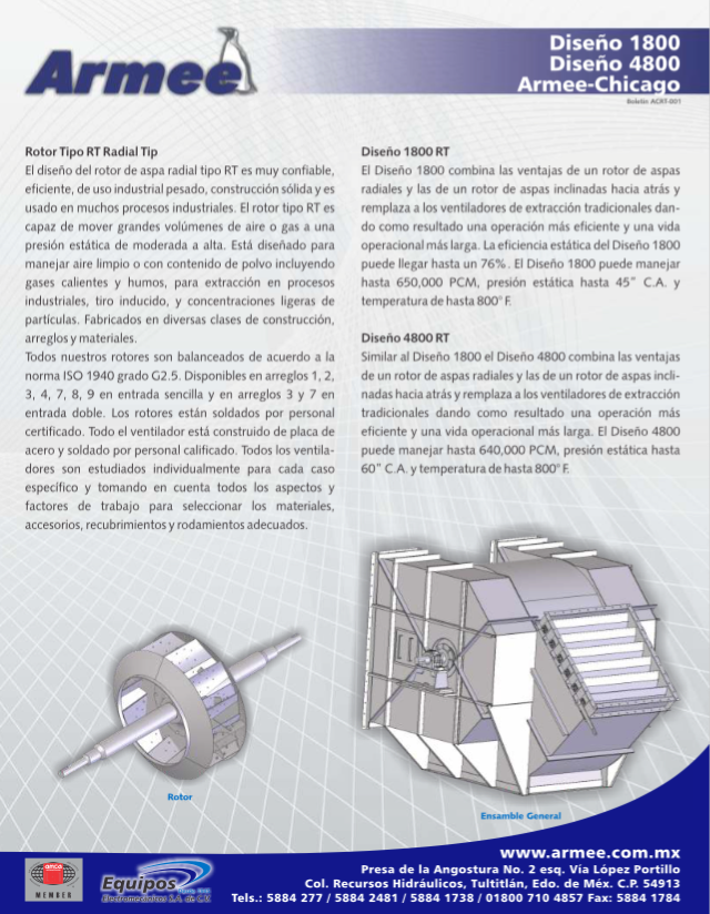 hasta 650,000 PCM, presión estática hasta 45″ С.А. у temperatura de hasta 800° F.